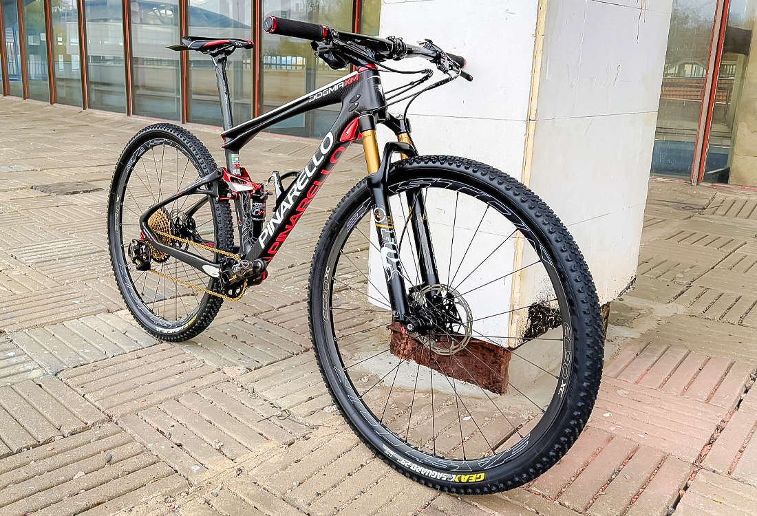Импозантное 12-скоростное оборудование Sram Eagle XX1 в золотой отделке, карбоновые колёса Easton EC90XC. Ну и остальные компоненты – от вилки и амортизатора до руля и подседельного штыря – на высшем уровне. Отметим, что Dogma даже на бездорожье остаётся Dogma – не просто впечатляющий внешний вид, но и исключительные ходовые качества.