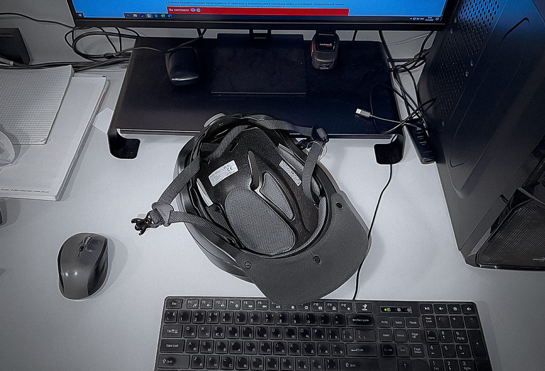 Система регулировки посадки в задней части крепится к ремням, позволяя опустить (поднять) её на нужную высоту на затылке, а большое регулировочное колёсико делает настройку плотности охвата простой и удобной даже на ходу. В общем, сидит на голове он очень удобно и это, кстати, шлем, который подойдёт тем, у кого длинные волосы.