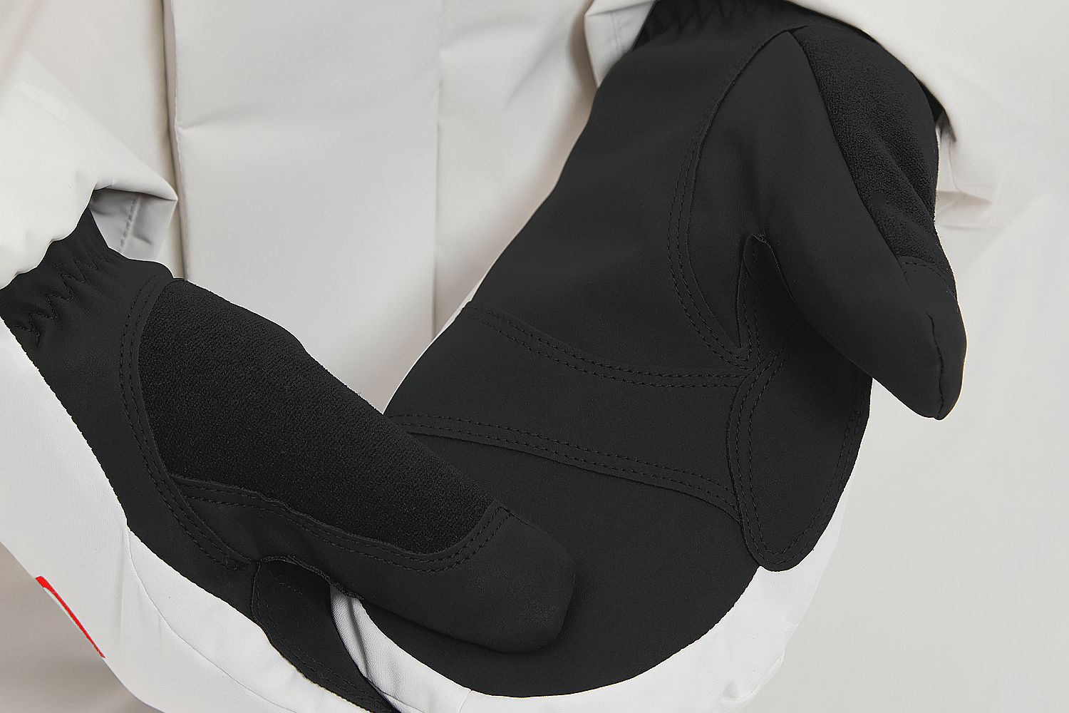 Минимальное количество швов снижает риск натирания, а мягкие вставки для лица и носа на тыльных сторонах больших пальцев добавляют функциональности и комфорта. Эргономичный крой повторяет форму рук, делая посадку варежек на них максимально естественной и удобной.