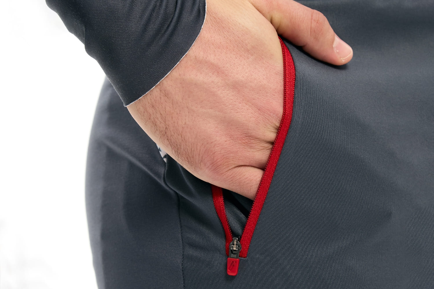 В передней части расположен застёгивающийся карман для хранения необходимых мелочей. На лодыжках – молнии YKK с ветрозащитными клапанами для облегчения надевания штанов поверх лыжных ботинок или кроссовок.