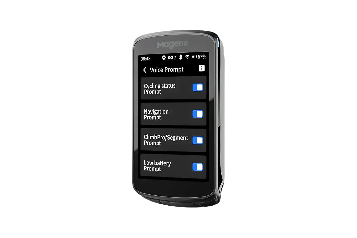 Голосовые подсказки - получайте всю важную информацию, не отрывая взгляд от дороги. C706 оснащён встроенным мощным мини-динамиком, который чётко озвучивает повороты по маршруту, круги, статус поездки, уведомления о сегментах и подъёмах, предупреждения о низком заряде велокомпьютера и датчиков, а также ключевые показатели тренировки. Голосовые подсказки звучат прямо с устройства — вы сосредоточены на дороге и едете безопаснее. Голосовые уведомления доступны на 13 языках, включая русский.