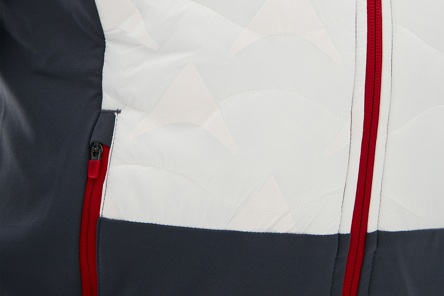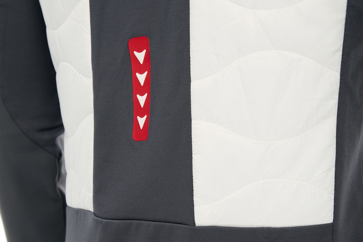 Передняя часть куртки и вставки на спинке отделаны стёжкой и подбиты утеплителем для максимальной теплоизоляции. Нижняя часть и центральная часть спинки изготовлены из плотного эластичного трикотажа, отлично сохраняющего тепло и отводящего влагу.