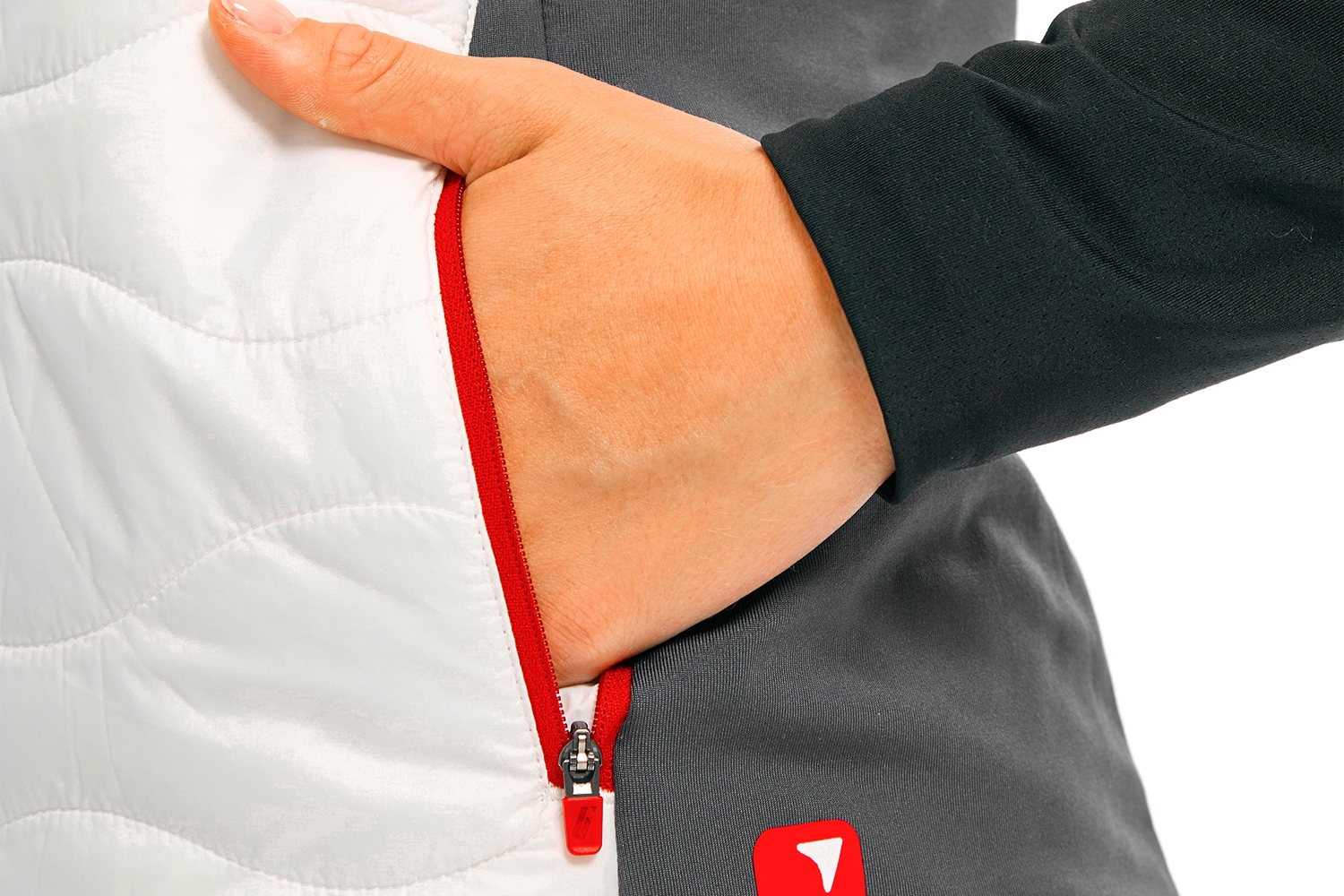 На передней части расположены два застёгивающихся на молнии кармана. В модели использована премиальная фурнитура YKK – стандарт надёжности в спортивной экипировке. Едва заметные при дневном свете, светоотражающие принты в виде фирменной стрелочки Bivium ярко проявляются при искусственном освещении в темноте.
