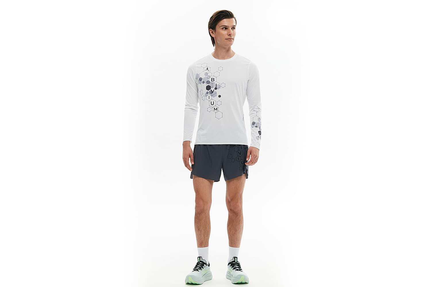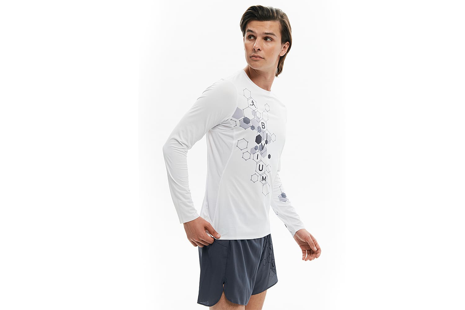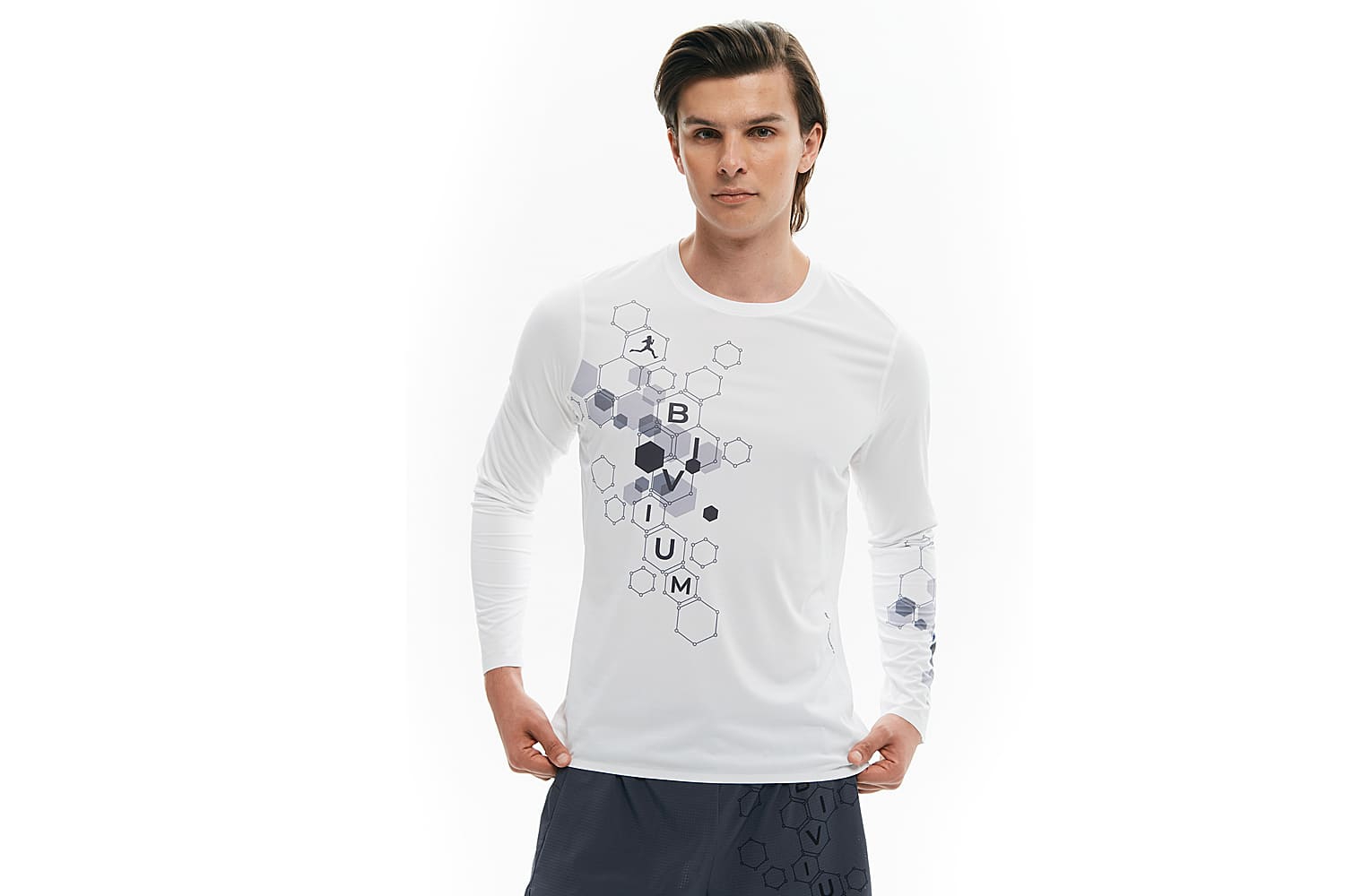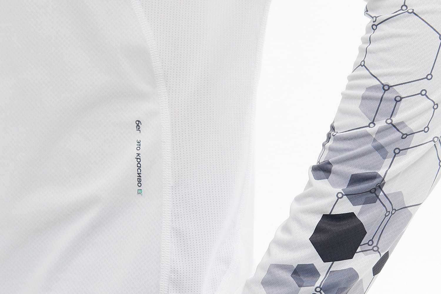 Принт с молекулами спереди отсылает к идее коллекции — поиску собственной формулы движения, а мотивирующая надпись сбоку даст скрытый импульс продолжать движение
