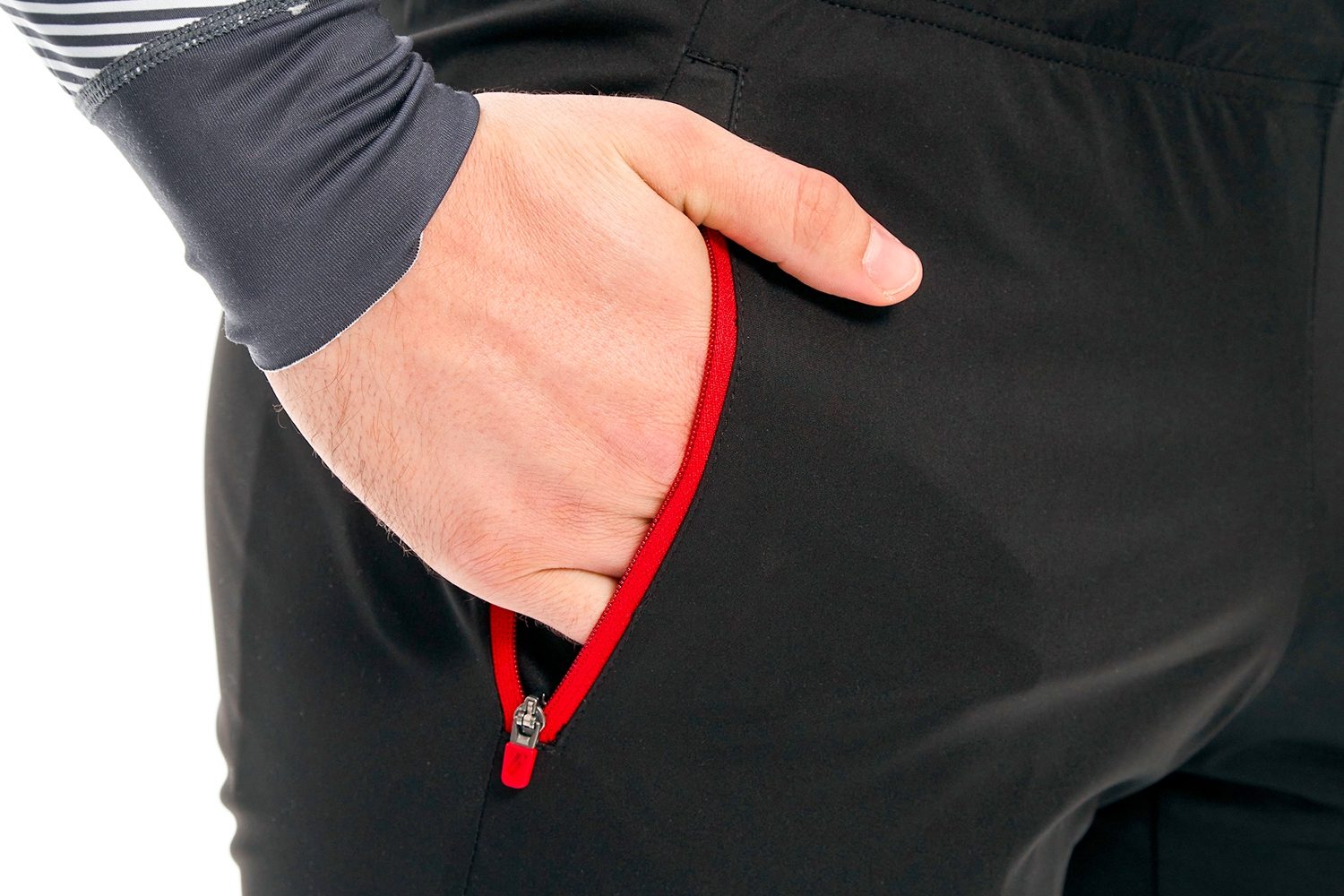 Штаны оборудованы молниями YKK с ветрозащитными клапанами на лодыжках для комфортного переодевания. На внутренней стороне пояса и понизу штанов – силиконовые вкрапления для удержания на должном месте. Внутри пояса – брендированный шнурок для регулирования посадки.