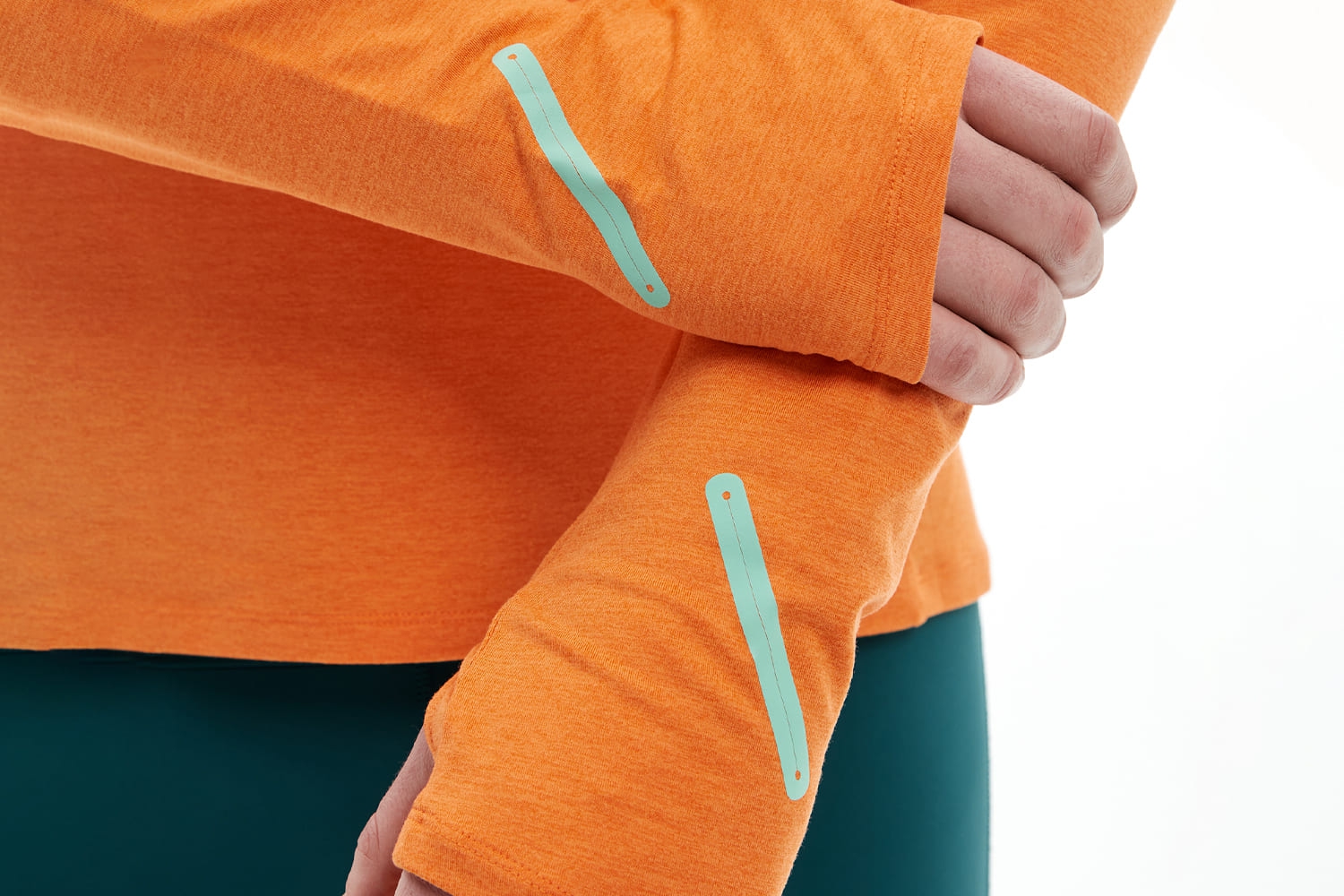 • Места под разрезы для часов на рукавах, чтобы следить за показателями во время тренировки.