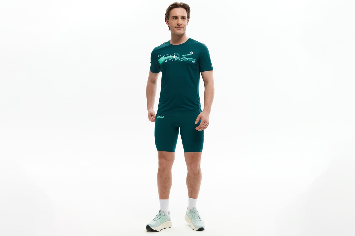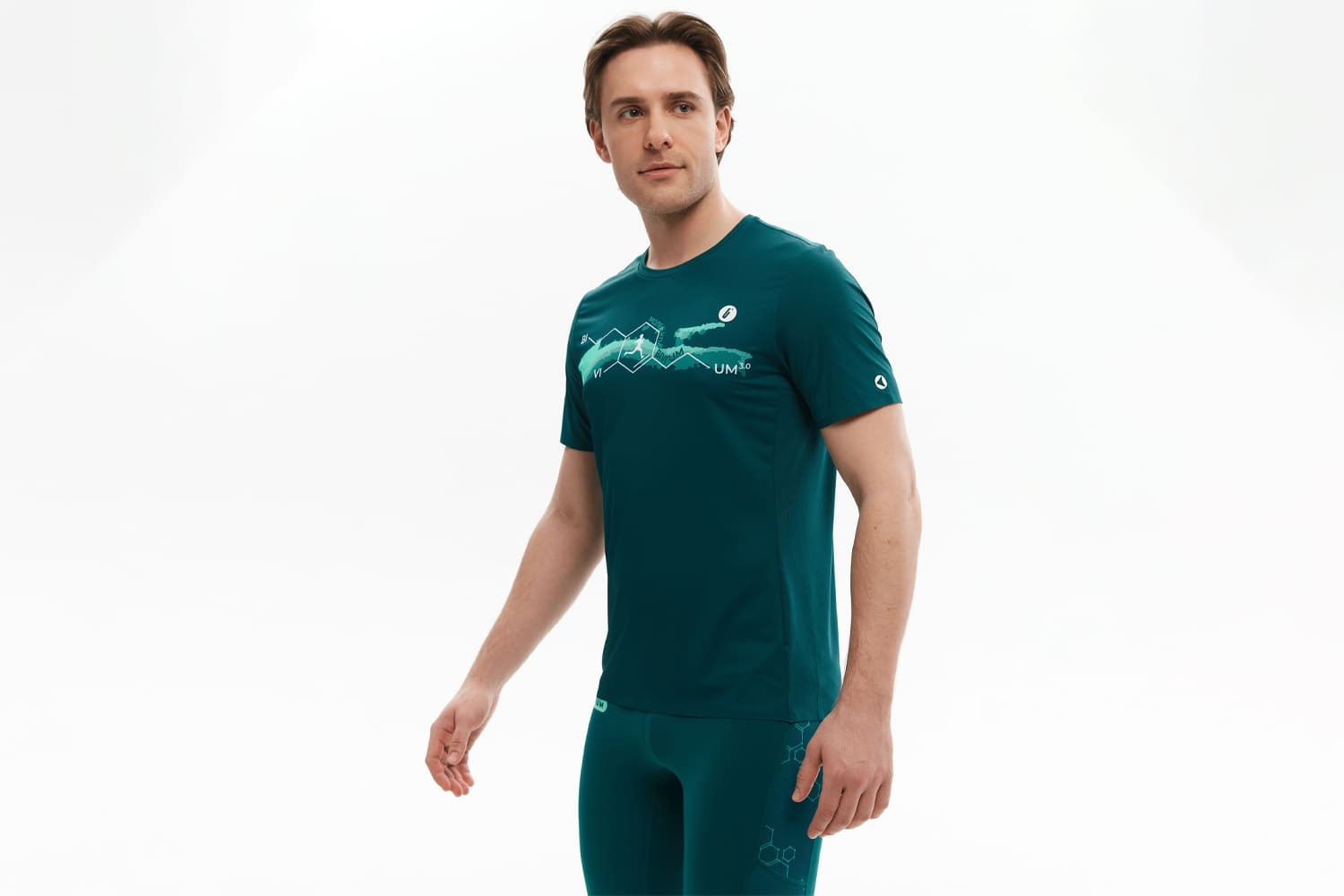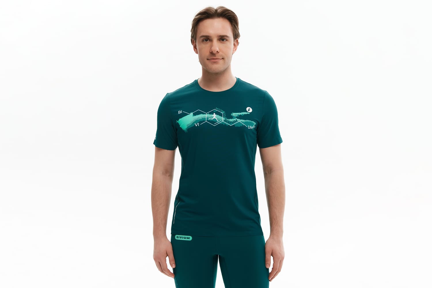 Принт с молекулами на передней части отсылает к идее коллекции — поиску собственной формулы движения. Мотивирующая надпись сбоку — скрытый импульс продолжать движение. Каждая деталь работает на результат, чтобы ничто не отвлекало от тренировки.